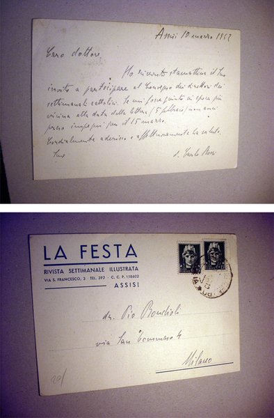 Cartolina "La Festa - Rivista Settimanale Illustrata ASSISI" scritta e firmata don Carlo Rossi