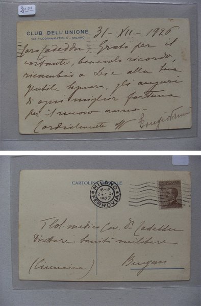 Cartolina manoscritta e firmata LUIGI BONGIOVANNI (Governatore Cirenaica) - Club dell´Unione 1926