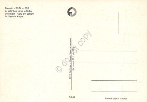 Cartolina Dolomiti Siusi Chiesa di S. Valentino verso lo Sciliar
