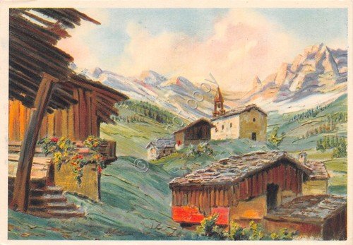 Cartolina illustrata baite monti chiesa Ed. Cecami anni '60