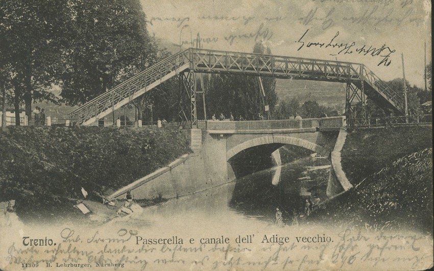 Trento, Passerella e canale dell'Adige vecchio.