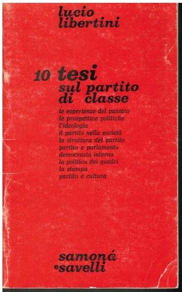 10 TESI SUL PARTITO DI CLASSE. LE ESPERIENZE DEL PASSATO - LE PROSPETTIVE POLITICHE - L'IDEOLOGIA - IL PARTITO NELLA SOCIETA' - LA STRUTTURA DEL PARTITO - PARTITO E PARLAMENTO - DEMOCRAZIA INTERNA - POLITICA DEI QUADRI - LA STAMPA - PARTITO E CULTURA