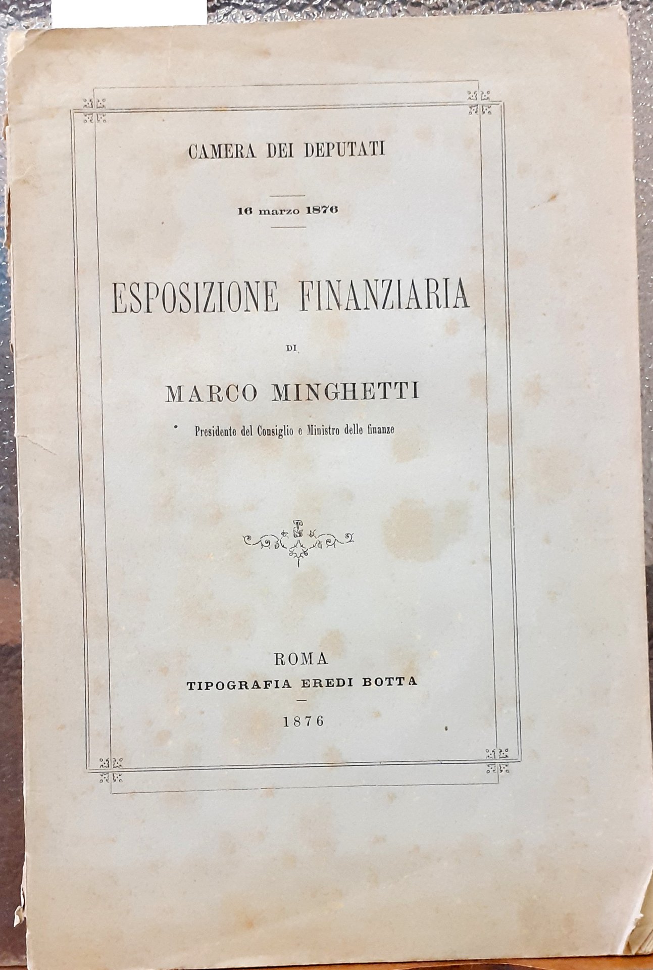 16 MARZO 1876: ESPOSIZIONE FINANZIARIA DI MARCO MINGHETTI Presidente del Consiglio e Ministro delle Finanze.,