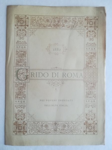 Pieghevole di 6 facciate (ciascuna facciata misura cm 16,5 x 23), nella facciata interna centrale e' stampata, entro cornice tipografica, la poesia 'Grido di Roma'. La poesia fu posta in musica da Augusto Rotoli e sarebbe stata poi stampata dall'editore musicale Ricordi. Il testo, scritto da Raffaele Salustri, e' un grido di dolore da Roma per l'alluvione del Polesine del 1882.