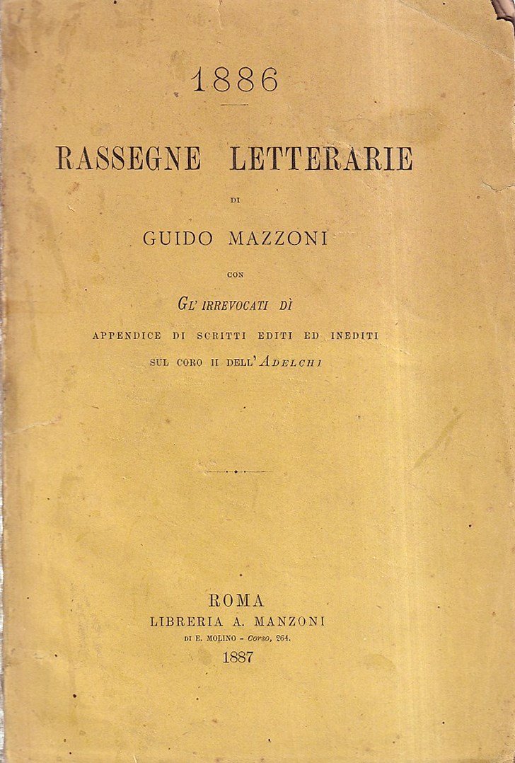 1886 Rassegne Letterarie Di Guido Mazzoni Con Gl'irrevocati Di Appendice Di Scritti Editi Ed Inediti Sul Coro II dell'Adelchi