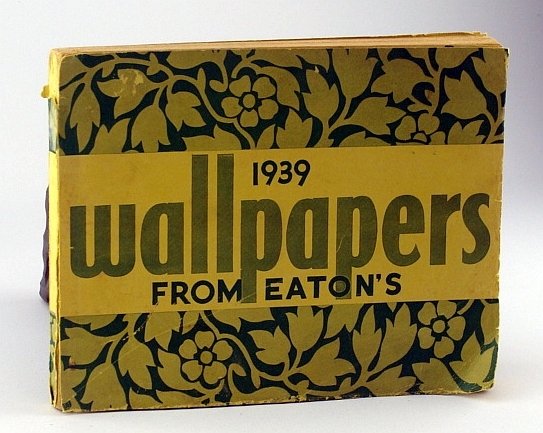 Unpaginated. Approximately 5/8" thick. Oblong 9.5" x 7.5". Blank order form laid-in. First two pages provide instructions for measuring, ordering, and installing. Balance of approximately 65 leaves consist of actual colour samples of vintage 1939 Eaton's wallpaper, complete with their pricing and description/sales blurb on backside. Above-average wear. Bit of writing inside back cover. Front cover almost loose. A worthy copy of this incredibly nostalgic item - which will serve as a superb reference one day when what was old becomes new again. Book