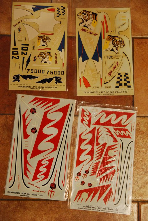 tauromodel tauro model decalcomanie decals 48-522 annuversari, 32-524, 531 diavoli rossi, 525 pattuglia acrobatica. .