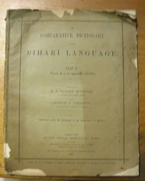 A comparative Dictionary of the Bihari Language. Part I. From a to ag’màni. (Published under the Patronage of the Government of Bengal.)