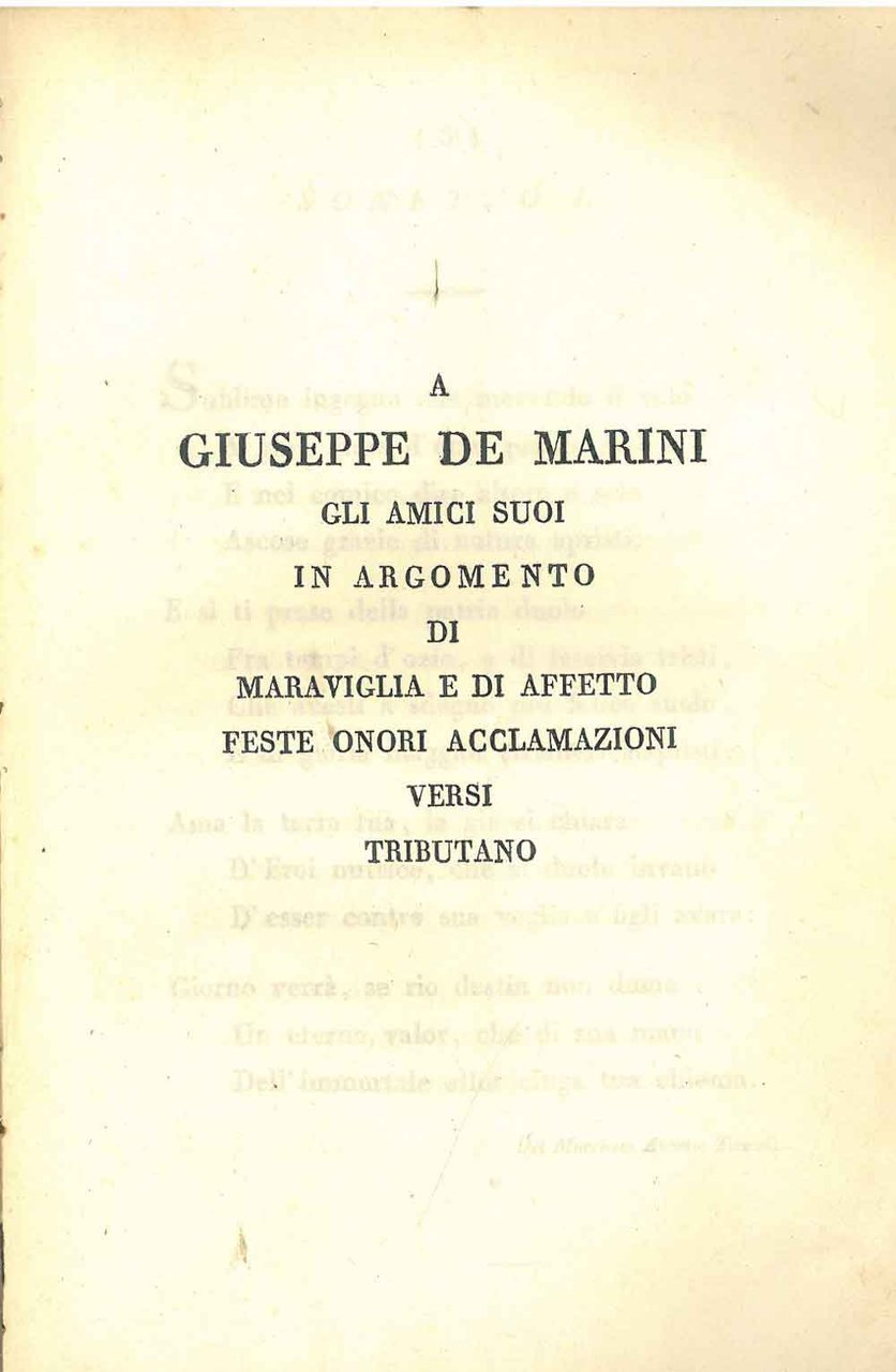 A Giuseppe de Marini gli amici suoi in argomento di maraviglia e di affetto feste onori acclamazioni versi tributano