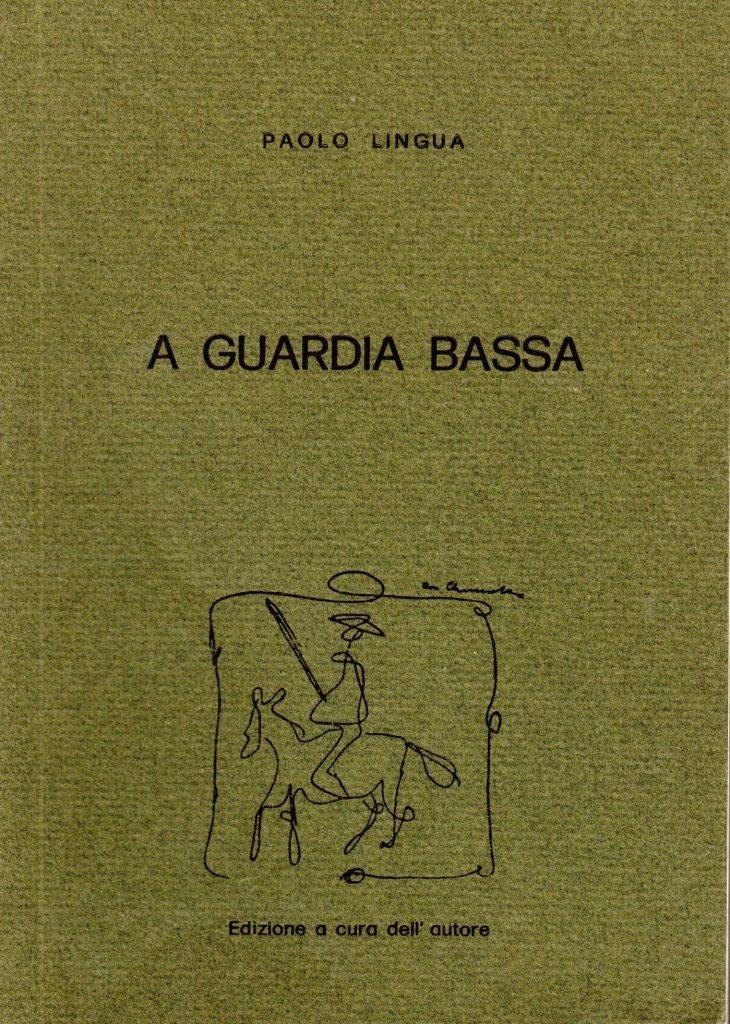 A guardia bassa, prima edizione 1972, formato 12 x 17.<BR>Copertina morbida di colore verde oliva con titoli in nero al piatto anteriore e con piccolo disegno di Angelo Castelli.In prima pagina presente dedica dell'autore, datata 14 aprile 1972.<BR>Ottime condizioni.