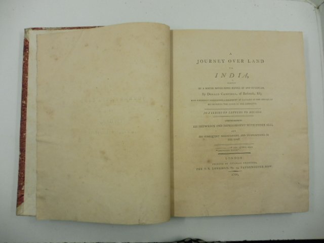 In 4, pp. XIX + 176 + 138 + 181 + 9. M. pl. coeva. Spelature ai piatti e al d. Edizione originale di questa descrizione di viaggio dall'Europa a Zante, Cipro, Aleppo, Baghdad, Bassora fino a Goa e Bombay. Cox, I, 306.