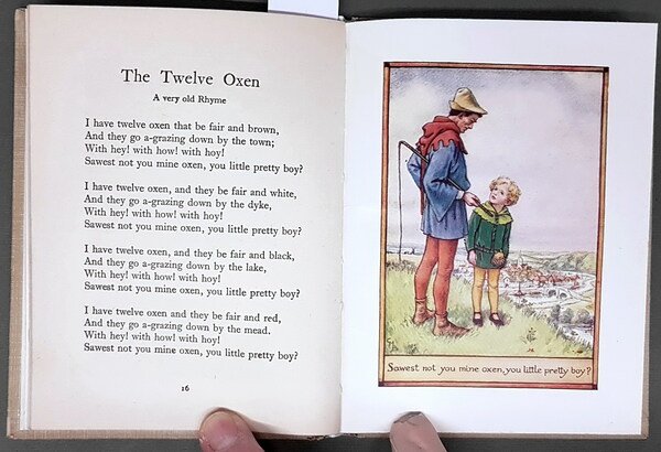 Vol. in -16 picc. (10,5 x 14,5 cm.), legatura editoriale cartonata col. grigio-verde con illustr. a colori e titoli in nero sul piatto ant, dorso rinforzato in cartoncino col. nero, testo in inglese, pag. 49, (1) con splendide illustr. a colori a p.pagina e fig. in nero nel testo. Modesti segni del tempo, nel complesso in abb. buone condizioni (integro e ben legato).