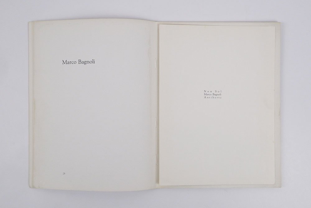 - brossura illustrata (frammento di testo tratto dal sonetto di Rimbaud «A noir, E blanc, I rouge O vert, U bleu, voyelles»), nn. 16, 20-22 con fascetta editoriale,