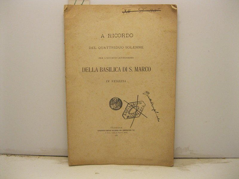 A RICORDO DEL QUATTRIDUO SOLENNE PER L'OTTAVO CENTENARIO della basilica di S. Marco in Venezia.