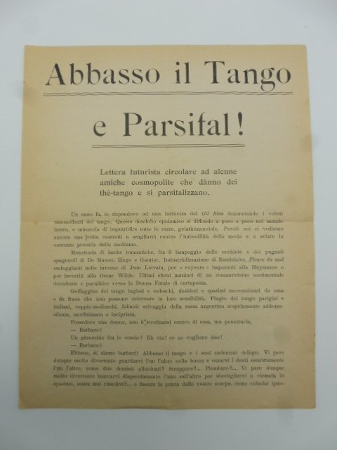 Abbasso il tango e Parsifal! Lettera futurista circolare.
