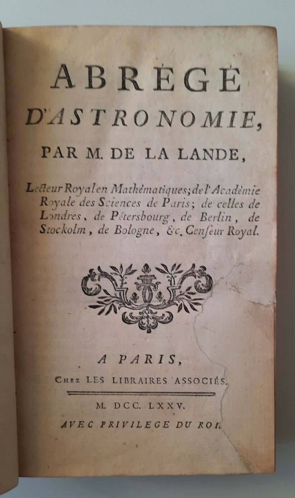 ABREGE D'ASTONOMIE PAR M. DE LA LANDE PARIS LES LIBRAIRES ASSOCIES 1775
