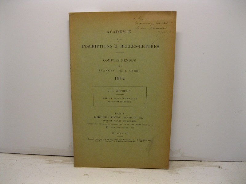 Academie des Inscriptions & Belles-Lettres. Comptes rendus des se'ances de l'anne 1912. Note sur un diplome militaire decouvert en Thrace.