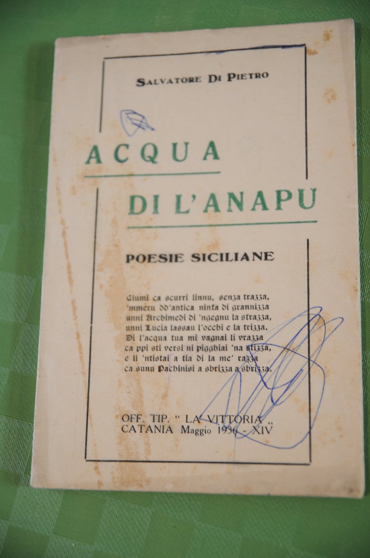 salvatore di pietro acqua di l'anapu autografato con dedica. 1936 .