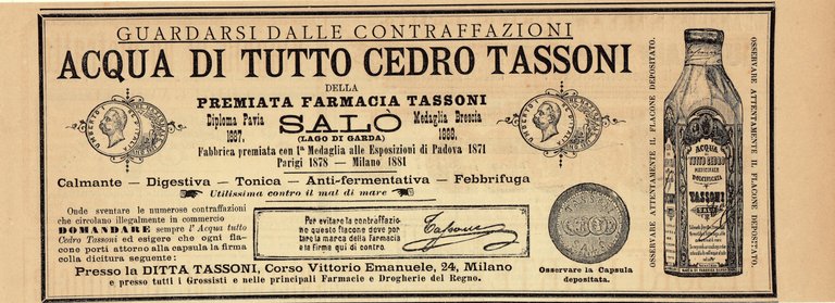 Acqua di tutto cedro Tassoni. Advertising 1889