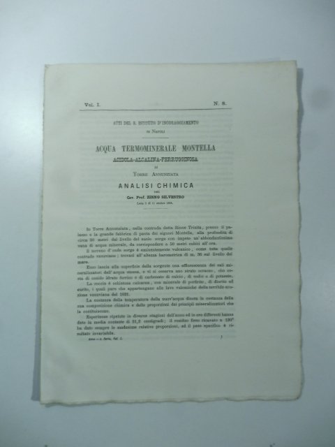Acqua termominerale Montella acidola-alcalina-ferrugginosa di Torre Annunziata. Analisi chimica