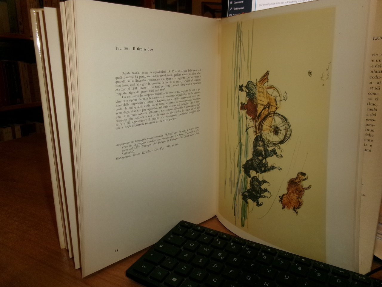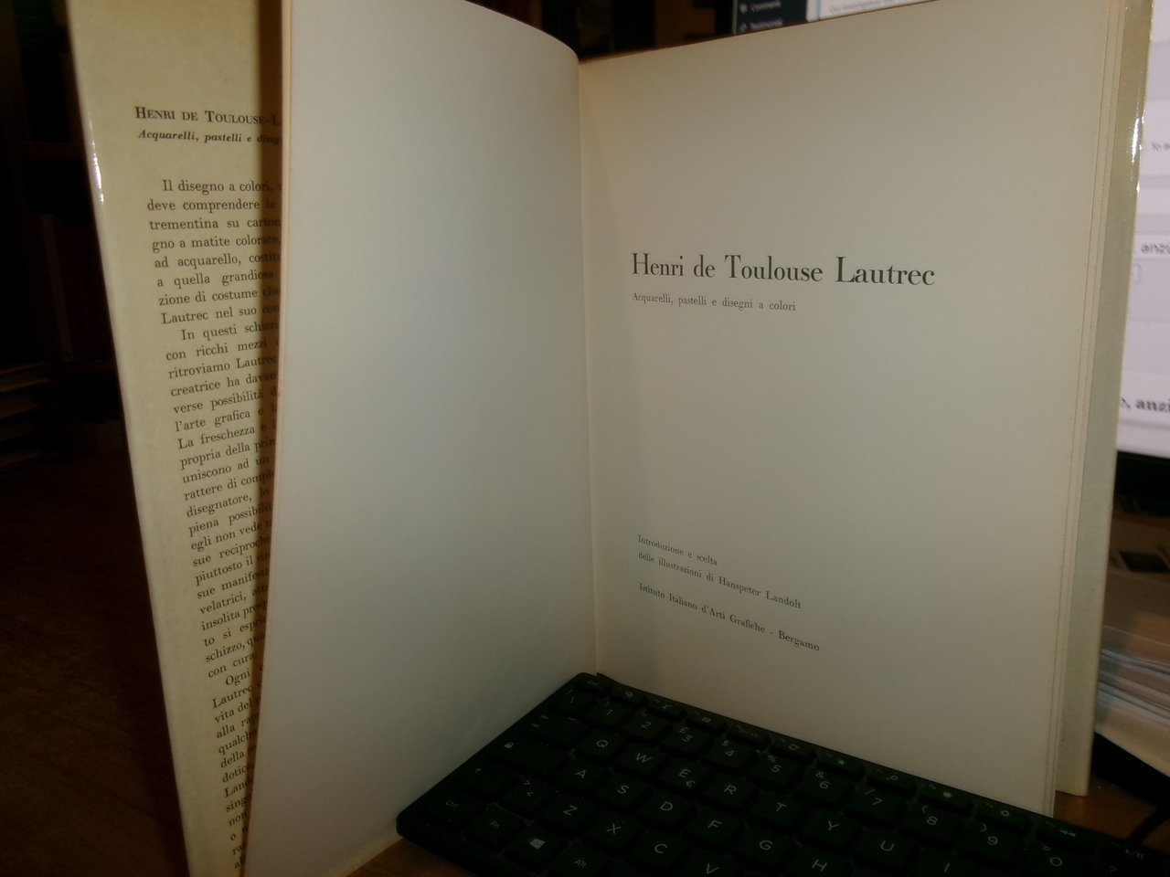 HANSPETER LANDOLT. Bergamo, Ist. Italiano d' Arti Grafiche, 1963. Acquarelli pastelli disegni di TOULOUSE-LAUTREC. In-8° grande, tela edit. con sovracopertina ill. a col. 89 pp. con 52 tavole a colori. Libro usato ma ben conservato. Neg. mob. M