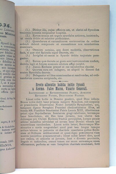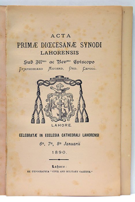 ACTA PRIMAE DIOCESANAE SYNODI LAHORENSIS. Sub Illmo. Ac Revme. Episcopo Symphoriano Mouard, Ord. Capucc. Celebratae in Ecclesia Cathedrali Lahorensi 6a, 7a, 8a Januarii.