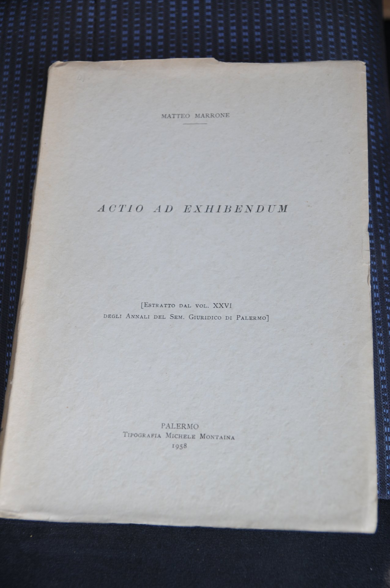 matteo marrone actio ad exhibendum autografato dall'autore con dedica. palermo .