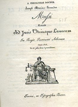 Ad Juris Utriusque Lauream In Regio Taurinensi Athenaeo anno 1823, die 28 julii, hora 5 pomeridianae