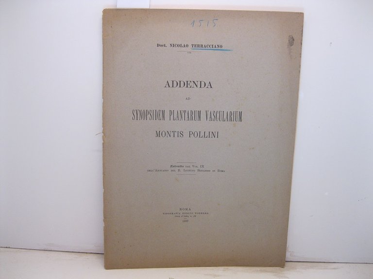 Addenda ad synopsidem plantarum vascularium montis Pollini. Estratto dal vol. IX dell'Annuario del R. Istituto Botanico di Roma