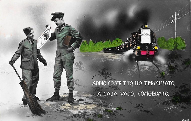 Addio coscritto, ho terminato, a casa vado, congedato. Non viaggiata, originale