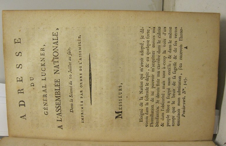 Adresse du Ge'neral Luckner a' l'Assemble'e Nationale dans la seance du 10 julliet au soir imprime'e par ordre de l'Assemble'e