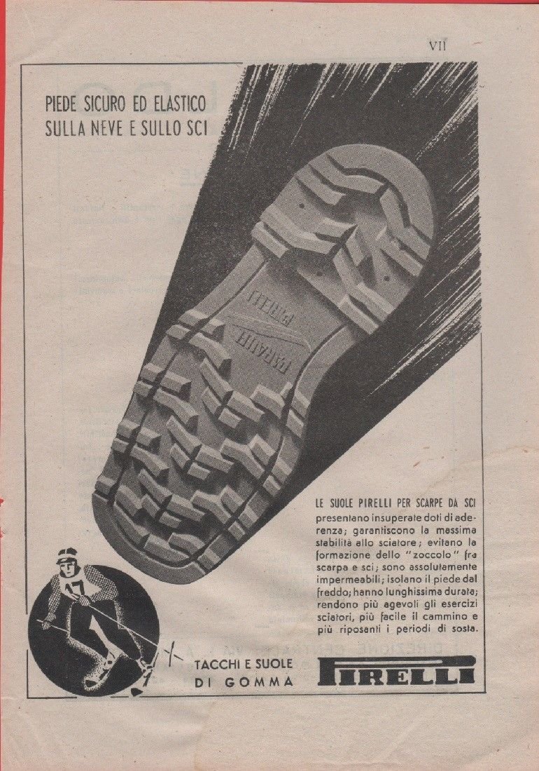 Advertising - Suole in gomma per scarpe da sci. Pirelli - 1940