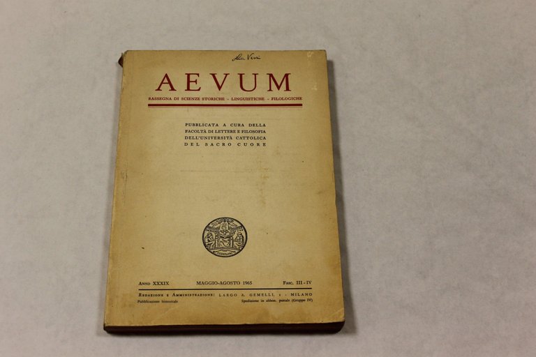 Aevum, rassegna di scienze storiche, linguistiche, filologiche