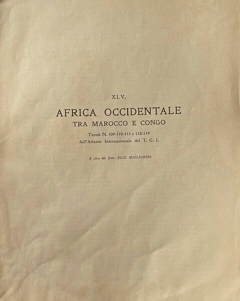 Africa occidentale tra Marocco e Congo (tavole n. 109-110-111 e 118-119)a cura del Prof. E. Migliorini . Fascicoli di commento all'atlante internazionale del T.C.I.