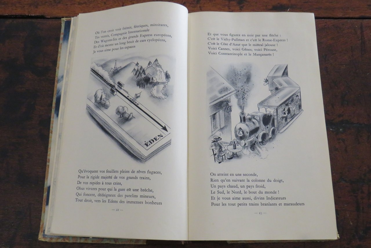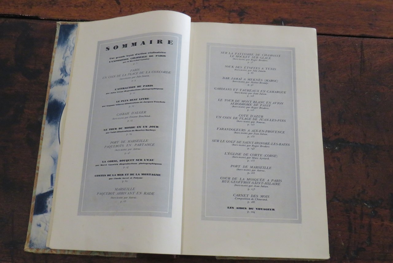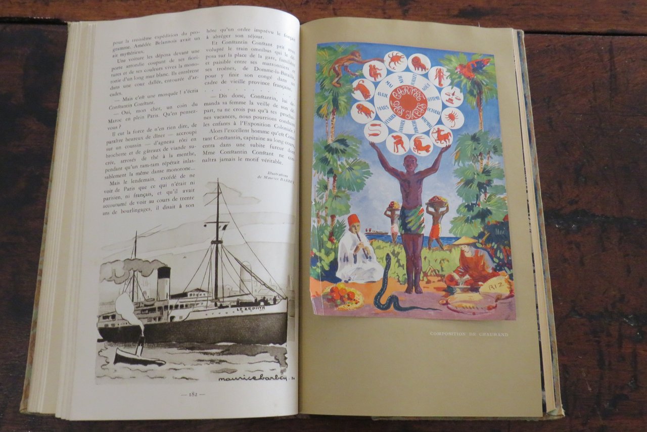 Paris, Compagnie des Chemins de fer Paris-Lyon-Méditerranée, J. Barreau & C., s.d. [ma 1930]. In -4 (mm. 170x290,5), pp. 304. Agenda, Guida, Album de la Compagnie des Chemins de fer Paris-Lyon-Méditerranée, riccamente illustrato da numerose illustrazioni in nero e a colori, disegni, fotografie in bianco e nero e 16 splendide tavole illustrate nel testo, con riproduzioni ad acquerello, applicate su cartoncino (fra cui, ad esempio, "Place de la Concorde", Paris, Jule Janein; "Casbah d’Alger", Etienne Bouchaud). Legatura editoriale mezza tela, con piatti ornati da un motivo in carta a colori, con titolo in oro al dorso. Sguardie illustrate al piatto anteriore e posteriore. All’interno: testi di diversi autori. Le Agende del PLM furono pubblicate dal 1911 al 1931. Prima di questa data l’Album delle Guide della Compagnie des Chemins de fer PLM apparve nel 1889. Alla fine del volume l’Agenda si presenta vuota, suddivisa nei corrispettivi mesi e giorni. Al piatto anteriore della legatura, in corrispondenza delle sguardie, dorso allentato, ma nell’insieme ottimo esemplare.