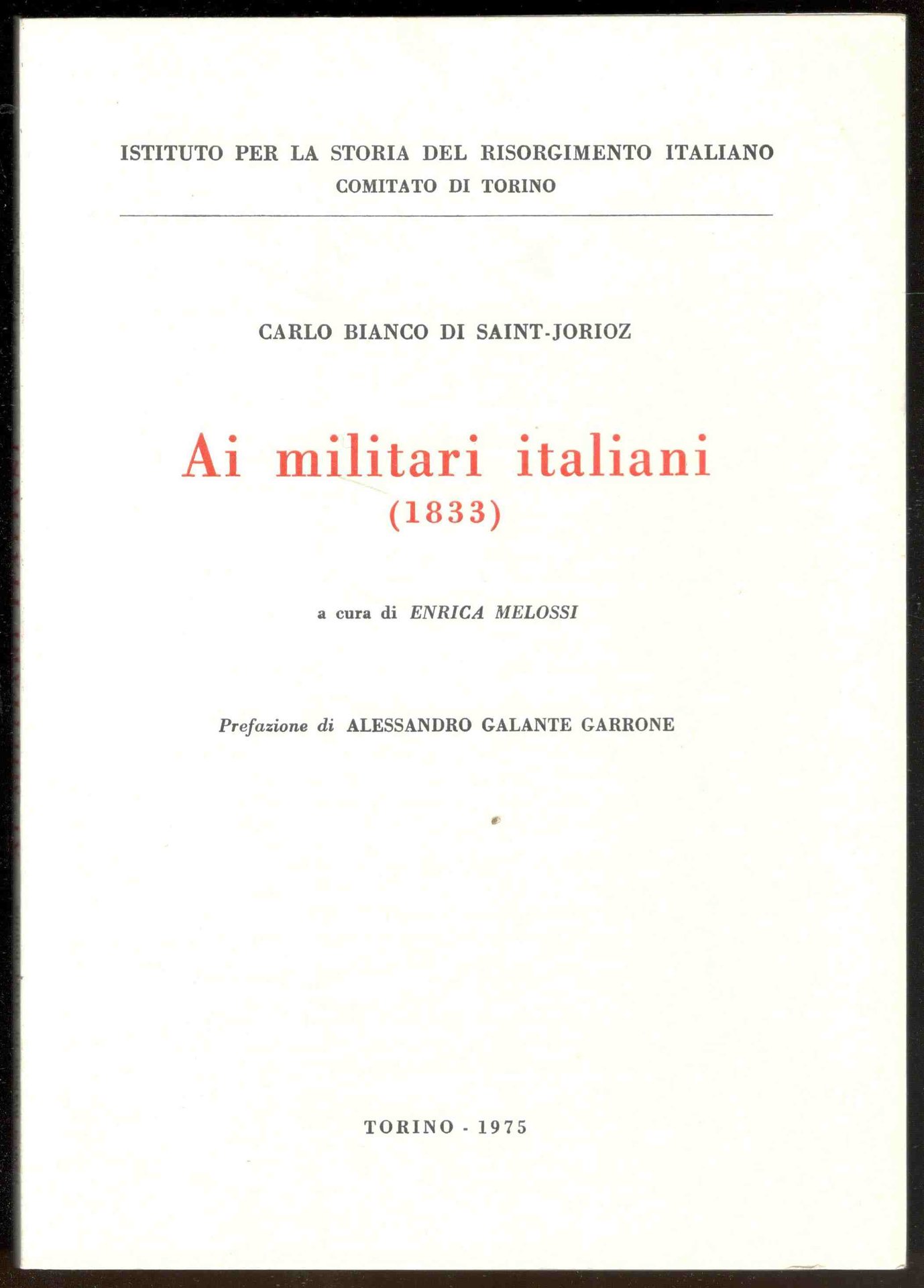 Ai militari italiani (1833). A cura di Enrica Melossi. Prefazione di Alessandro Galante Garrone