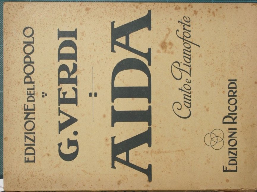 Opera in quattro atti di Antonio Ghislanzoni - Prima rappresentazione Cairo - Teatro Dell'Opera - 24 Dicembre 1871 - Collana Edizione del popolo - in 8° - pp.289 - Brossura editoriale - Ritratto dell'Autore in b/n in antiporta - Strappi con e senza mancanze al dorso, fioriture alla brossura, timbro in antiporta - Opera completa. Canto e Pianoforte