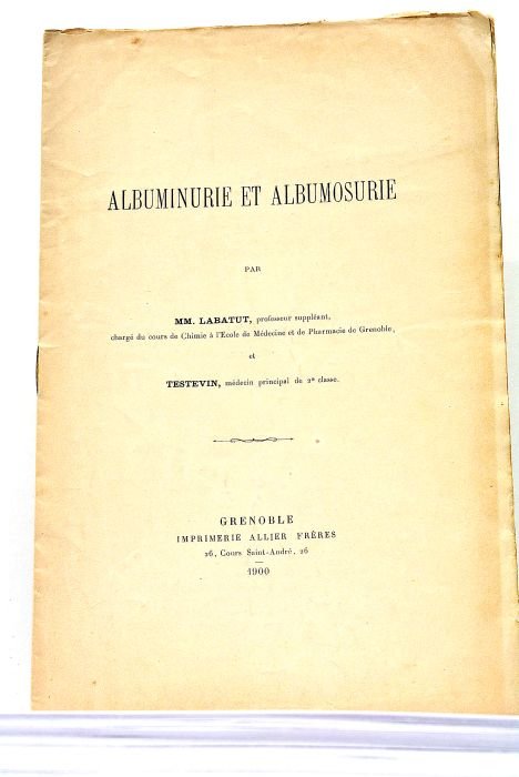 in-8. 11pp. Broché. Rousseurs. Feuillets écornés. Tiré-à-part du "Dauphiné Médical" sur l'albumose.