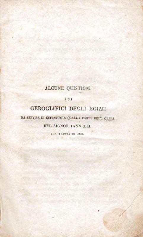 Alcune quistioni sui geroglifici degli egizi: da servire di estratto a quella parte dell'opera del signor Jannelli che tratta di essi.