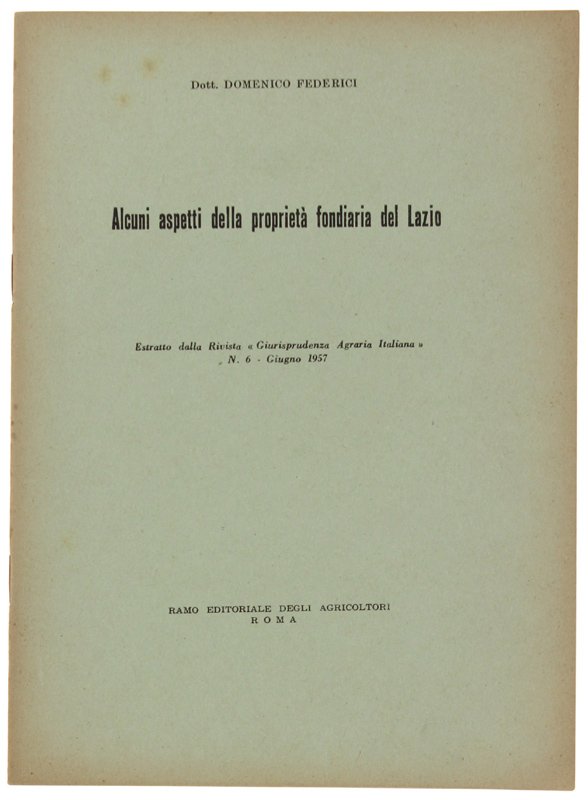 ALCUNI ASPETTI DELLA PROPRIETA' FONDIARIA DEL LAZIO.