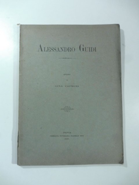 In 8 (cm 16,5 x 23), pp. 103 + (1b). Brossura editoriale con lievi danni riparati al dorso. Saggio critico relativo ad Alessandro Guidi, nato a Pavia nel 1650, poeta e letterato alla corte dei Farnese.