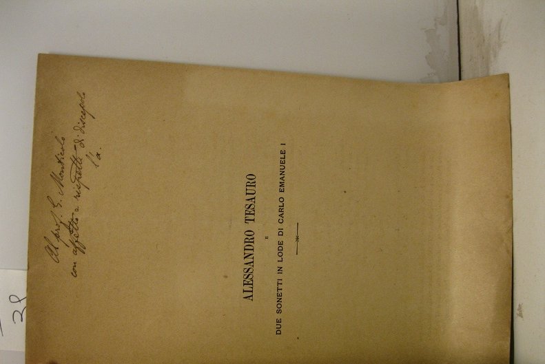 In 8, pp. 15 + (1b). Intonso. Br. ed. Estratto dall'Archivio Storico italiano, serie V, tomo XIV, 1894. Studio relativo al poeta Alessandro Tesauro, nato a Fossano nel 1558, autore di un poemetto, Sereide, dedicato a Carlo Emanuele I in occasione delle sue nozze, nel quale tratta dei bachi da seta.