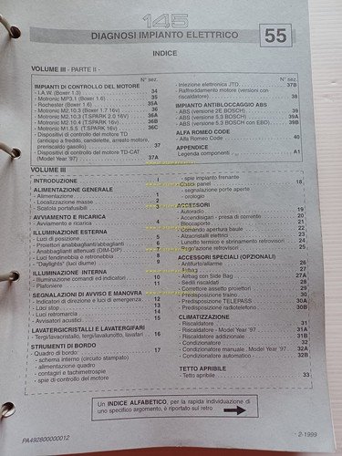 Alfa Romeo 145-146 1996-9 manuale officina Impianto elettrico-Diagnosi vol. III
