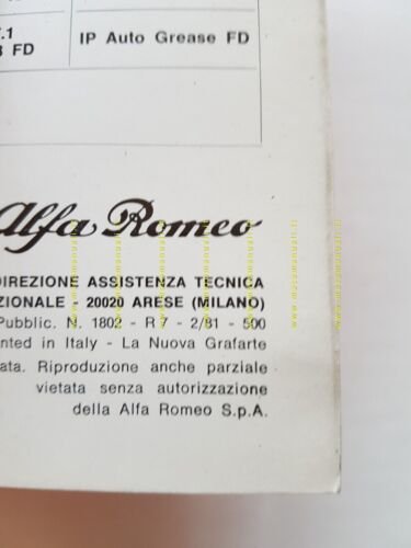 Alfa Romeo F12 -F11 1981 manuale uso manutenzione libretto originale