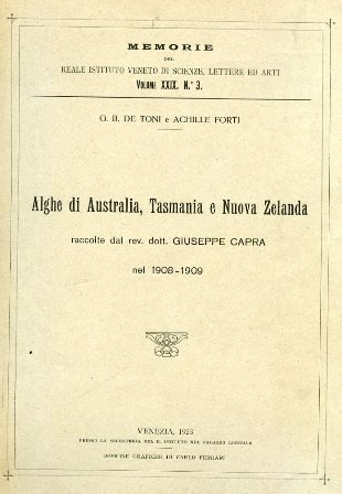 Alghe di Australia, Tasmania e Nuova Zelanda raccolte dal rev. dott. Giuseppe Capra nel 1908-1909. Memorie del Reale Istituto Veneto di Scienze, Lettere ed Arti. Volume XXIX, n° 3