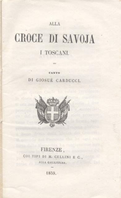 ALLA CROCE DI SAVOJA I TOSCANI. Canto di Giosuè Carducci. | Libri antichi e moderni | Carducci Giosuè.