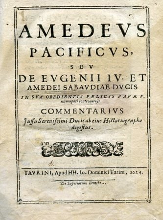 Amedeus Pacificus, seu de Eugenii IV et Amedei Sabaudiae ducis in sua obedentia Felicis Papae V. noncupati controuersijs commentarius jussu Serenissimi Ducis ab eius Historiographo digestus