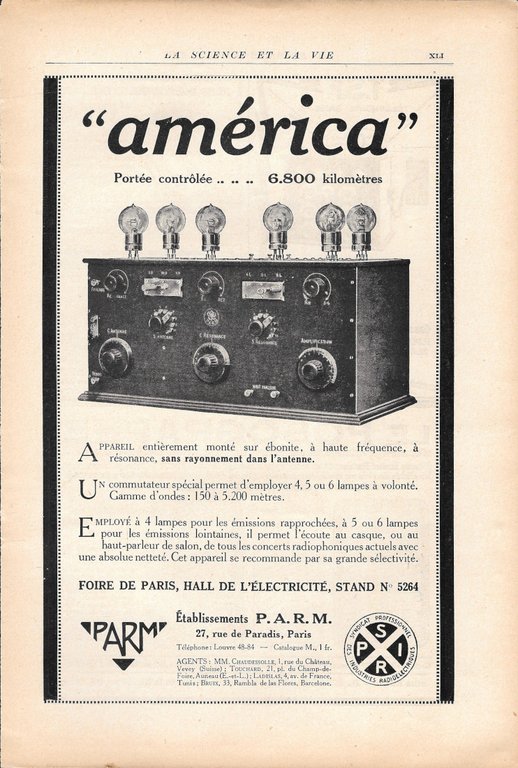 America, portee controlee, 6.800 km. Etablissements PARM - Advertising 1920