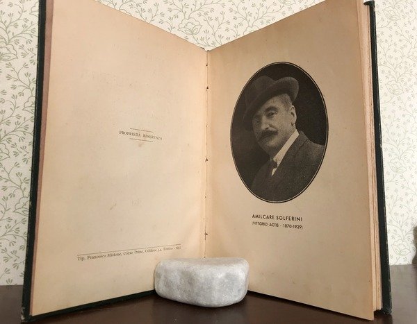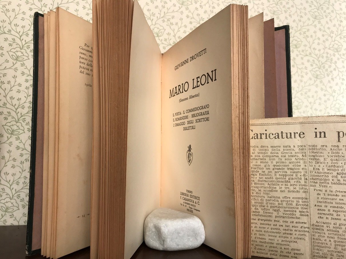 Volume in 8 legato in mezza tela, titolo al dorso, sguardie, frontespizio, tavola con ritratto di A. Solferini, prefazione, testo ed indice per 134 pp. Legato insieme a 'Mario Leoni - il Poeta - il Commediografo - il Romanziere - Bibliografia - l'omaggio degli Scrittori Dialettali' sempre del medesimo autore e casa editrice, stampato nel 1935, 115 pp. comprensive di indice. Arricchito da numerose illustrazioni fotografiche n.t. Due volumi in uno, curiosi e preziosi. In ottimo stato.