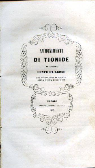 Ammonimenti di Tionide al giovine Conte di Leone per conservare il frutto della buona educazione